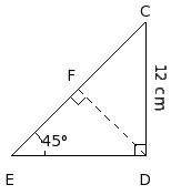 In the given figure, △DFE is right angled at E. If DE = 12 cm and ∠F = 45°, find FG