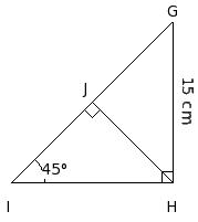 In the given figure, △GIH is right angled at H. If GH = 15 cm and ∠I = 45°, find GJ