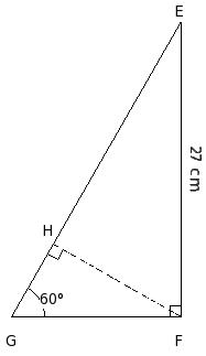 In the given figure, △EGF is right angled at F. If EF = 27 cm and ∠G = 60°, find EG