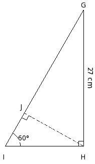 In the given figure, △GIH is right angled at H. If GH = 27 cm and ∠I = 60°, find HI