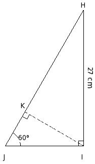 In the given figure, △HJI is right angled at I. If HI = 27 cm and ∠J = 60°, find HK
