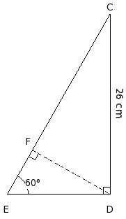 In the given figure, △CED is right angled at D. If CD = 26 cm and ∠E = 60°, find EF
