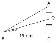 In the given figure, △ABC is a right angle triangle with ∠C = 90° and BC = 15 cm. Q is the mid-point of AC. Find the length of the altitude from C to AB.