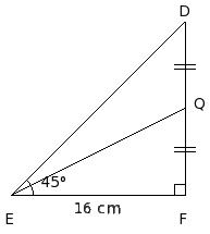In the given figure, △DEF is a right angle triangle with ∠F = 90° and EF = 16 cm. Q is the mid-point of DF. Find the length of the altitude from F to DE.