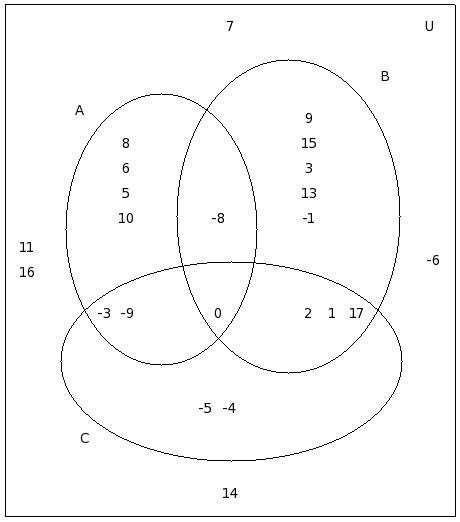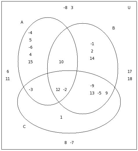 If μ = {8,0,-8,1,-3,18,-7,17,-9,-6,-5,-1,14,11,16,12,3,2,13,4,6,10,7,15},A = {8,0,-8,1,-3,18,-7,17,-9,-6}, B = {-5,-1,17,14,11,8,-6}, C = {-1,0,-3,-8,16,12,1,3,-5,11}, find (A − B) ∩ (A − C)