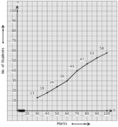The marks obtained by certain students in a mathematics examination are given below. Estimate the median.