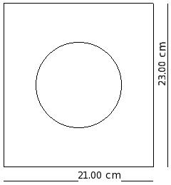 Suppose a die is thrown on a rectangular region as shown below. What is the probability that it will land inside the circle of diameter 12.00 cm?