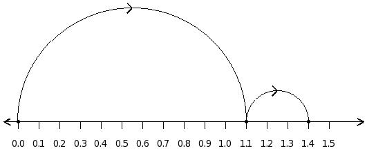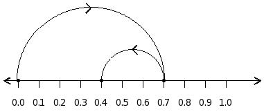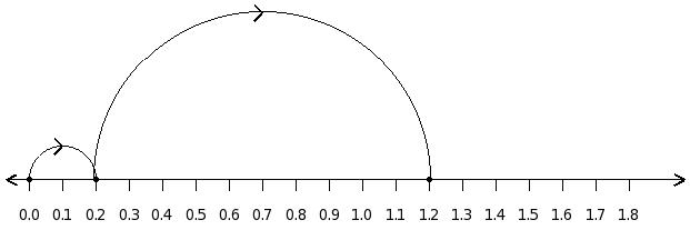 Find the sum of the decimal numbers at the points labelled with letters R and S