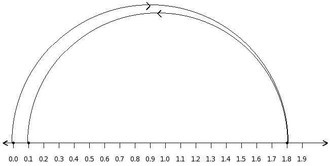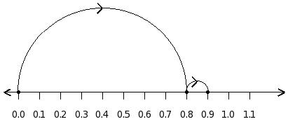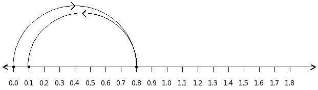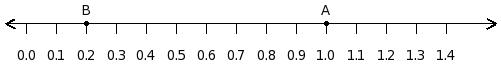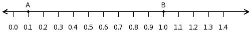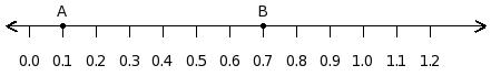 Find the difference of the decimal numbers at the points labelled with letters F and G