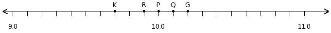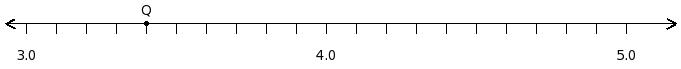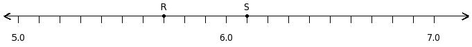 Find the difference of the decimal numbers at the points labelled with letters R and S
