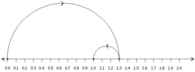 Find the sum of the decimal numbers at the points labelled with letters K and L