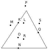 Identify the points that are outside the triangle