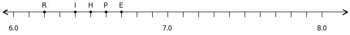 Find the position of the decimal number 6.4 on the number line