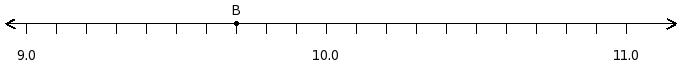 Find the decimal number at the point labelled with letter B