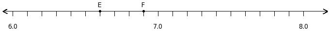 Find the product of the decimal numbers at the points labelled with letters E and F