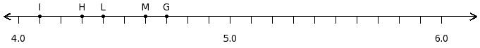 Find the position of the decimal number 4.4 on the number line