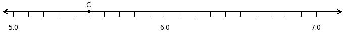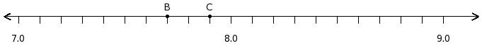 Find the difference of the decimal numbers at the points labelled with letters B and C