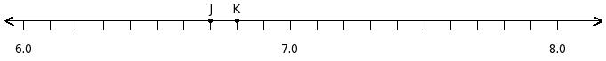 Find the product of the decimal numbers at the points labelled with letters J and K