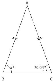 Two angles of a triangle measure 52° and 52° respectively. Find the measure of the third angle of the triangle