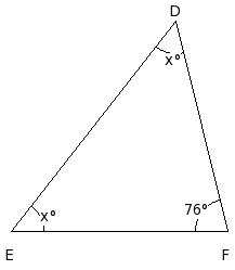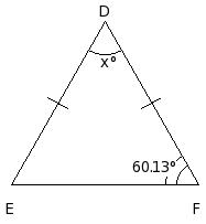 In △DEF, if ∠D = 70° and ∠E = ∠F, find the measure of each of the equal angles of the triangle