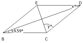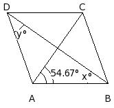 In the given figure, ABCD is a rhombus. Given x = 58°, find the value of 'y'.