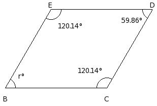Two adjacent angles of a parallelogram BCDE are in the ratio 10 : 20. Find the measure of each of its angles.