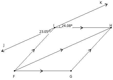 In the given figure, GHIJ is a parallelogram. GN and IO are perpendicular to the diagonal HJ. Given ∠OIJ = 23°, find ∠JHG