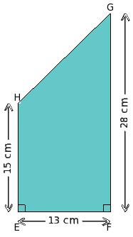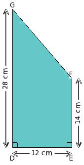 Find the area of shaded region in the adjoining figure, given that DE = 12 cm, EF = 28 cm, DG = 14 cm and ∠GDE = ∠DEF = 90°.
