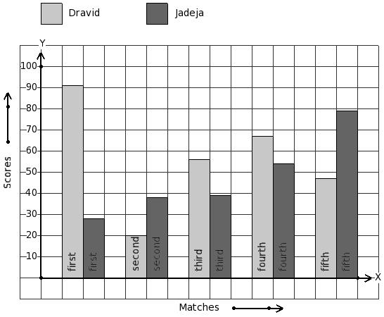 Fans of two cricketers Dravid and Jadeja claim that their star scored better than the other's. They made comparision on the basis of last 5 matches as shown in the bar diagram. Identify the table for the given bar diagram.