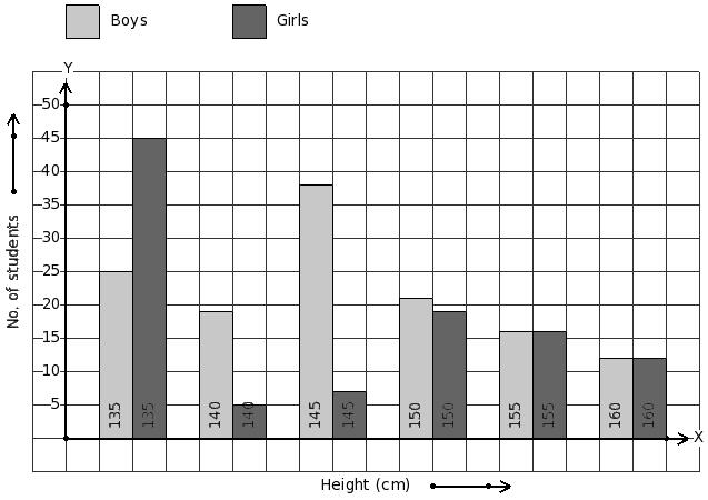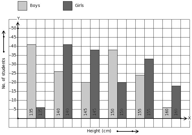 The heights of boys and girls of tenth class of a school are given below. Identify the table for the given bar diagram.