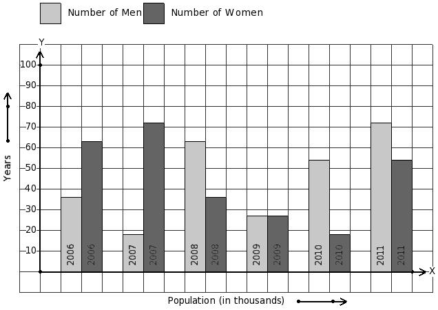 Population (in thousands) of men and women in a village in different years is shown in the given bar graph. Identify the table for the given bar diagram.