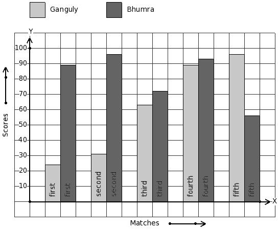Fans of two cricketers Ganguly and Bhumra claim that their star scored better than the other's. They made comparision on the basis of last 5 matches as shown in the bar diagram. Identify the table for the given bar diagram.