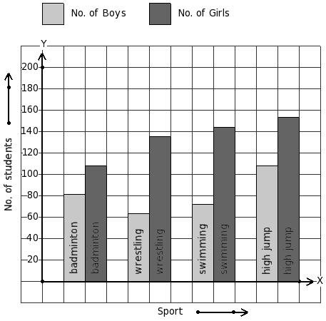 The following bar graph gives data regarding the favourite sport of 864 students of a school. Identify the table for the given bar diagram.