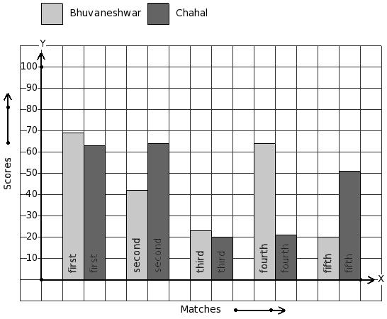 Scores made by Mahender in 5 test matches are shown below. Identify the table for the given line graph.