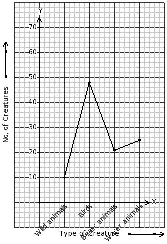 There are 104 creatures in a zoo as shown in the line graph. Identify the table for the given line graph.