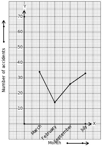 Given below is a line graph showing the number of accidents in a city during the given months of a certain year. Identify the table for the given line graph.