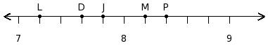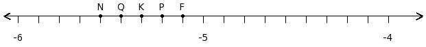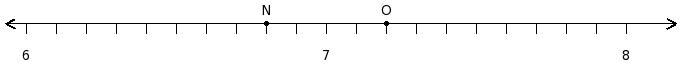 Find the difference of the rational numbers at the points labelled with letters N and O