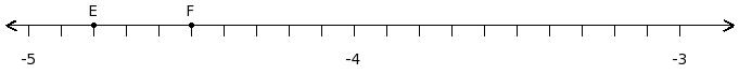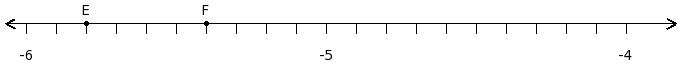 Find the difference of the rational numbers at the points labelled with letters E and F