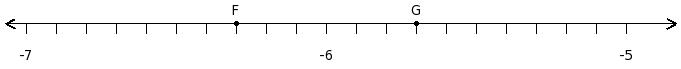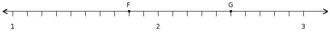 Find the product of the rational numbers at the points labelled with letters F and G