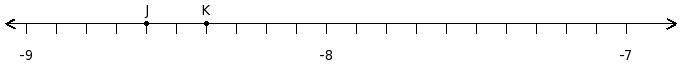 Find the product of the rational numbers at the points labelled with letters J and K