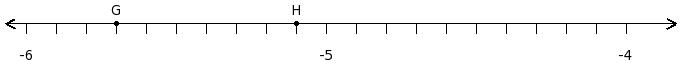Find the difference of the rational numbers at the points labelled with letters G and H
