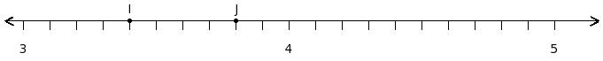 Find the product of the rational numbers at the points labelled with letters I and J