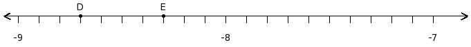 Find the sum of the rational numbers at the points labelled with letters D and E