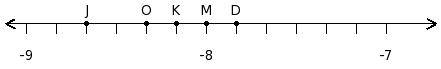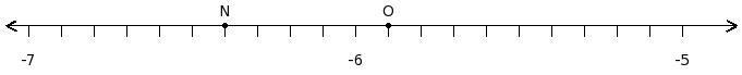 Find the difference of the rational numbers at the points labelled with letters N and O
