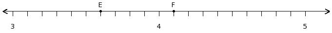 Find the sum of the rational numbers at the points labelled with letters E and F