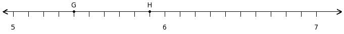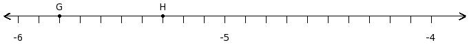 Find the product of the rational numbers at the points labelled with letters G and H