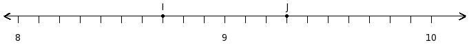Find the difference of the rational numbers at the points labelled with letters I and J