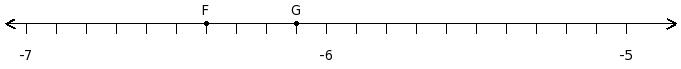 Find the product of the rational numbers at the points labelled with letters F and G