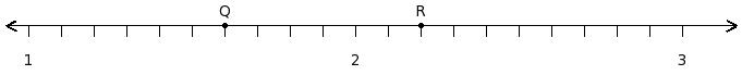 Find the sum of the rational numbers at the points labelled with letters Q and R
