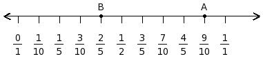 Find the difference between the values of numbers at point A and B
